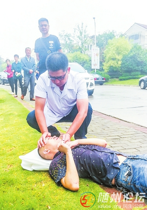 社區(qū)衛(wèi)生室醫(yī)生陳曉波正在現(xiàn)場(chǎng)為病人按壓穴位救治。(記者李文軍攝) 隨州論壇訊 記者張琴報(bào)道:“9月18日早晨,隨州城區(qū)碧桂園小區(qū)一男子突發(fā)疾病、抽搐不止,社區(qū) ...