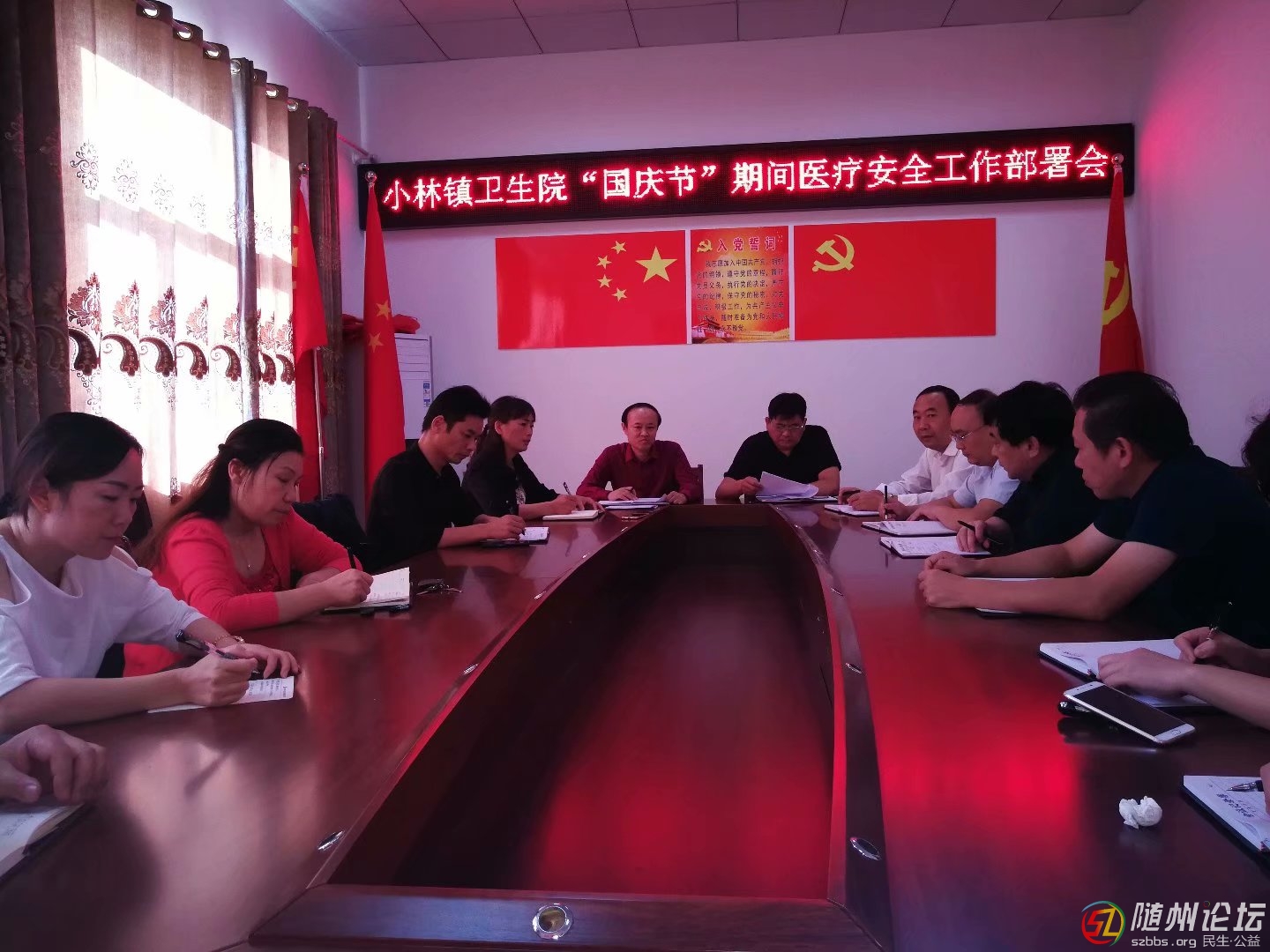 通訊員夏 輝、葉大強(qiáng)、特約記者豫南楚民報道: ——加強(qiáng)醫(yī)療安全防范、嚴(yán)格疾病監(jiān)查防控: 國慶前夕, 為確保全鎮(zhèn)人民群眾和本院‘醫(yī)務(wù)人員、患者’過上一個健康、平安的節(jié)日,隨縣小林鎮(zhèn)衛(wèi)生院召開了全院中層 ...
