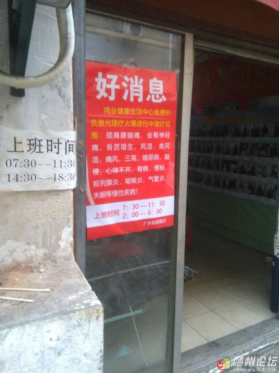 正文摘要:近年來,廣水市應(yīng)山辦事處的環(huán)保東路、前進(jìn)路、冷庫等處出現(xiàn)了名為“鴻業(yè)健康生活中心”的店,在環(huán)保東路、南關(guān)街、理學(xué)街、前進(jìn)路,許家井路、三里河菜市場等地段粘張貼廣告,宣稱該健康中心的激光針灸理療能調(diào)三高 ... |