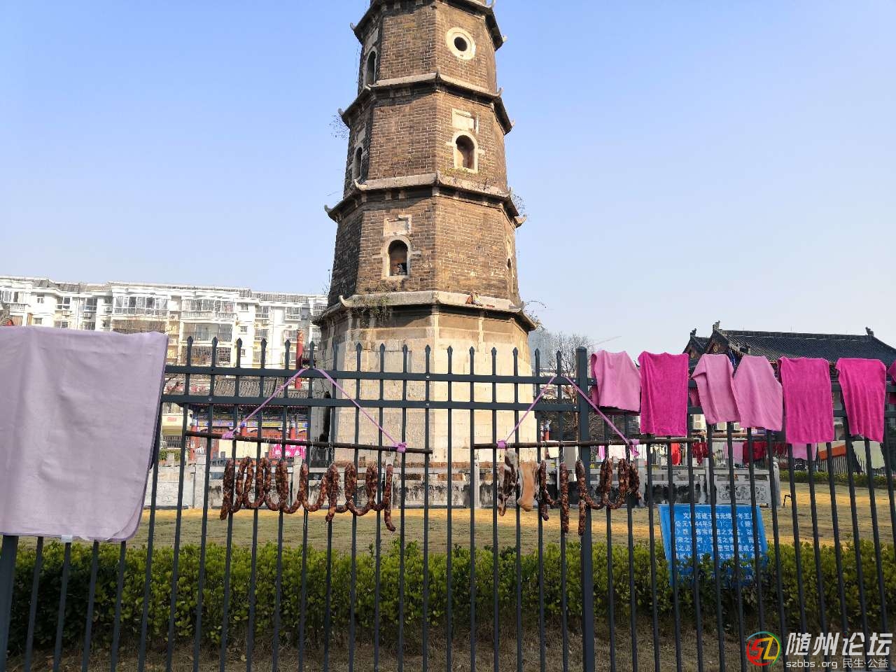 正文摘要:文峰塔是我市的保護文物,也是一道景觀,為此,政府專門建了欄桿來保護它??上?,這些欄桿上,現(xiàn)在都被香腸,被子和衣服占領了,文峰塔呀,你傷心不 ... |