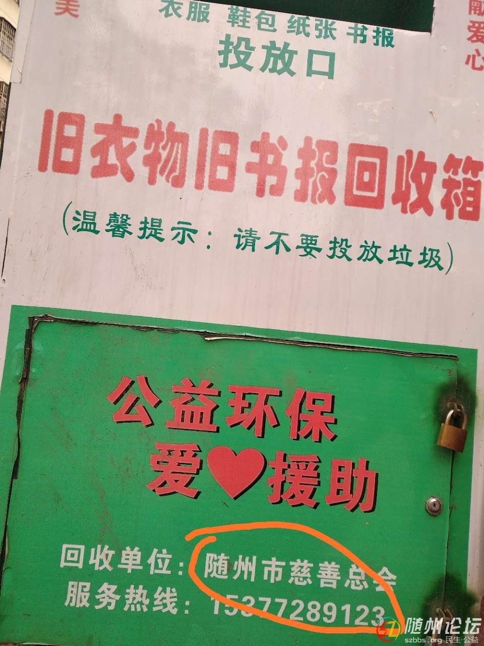 這個回收箱確實(shí)是市慈善總會設(shè)的,他們有雇請車輛定期回收。我們這邊還主動要求他們設(shè)了兩個呢 |