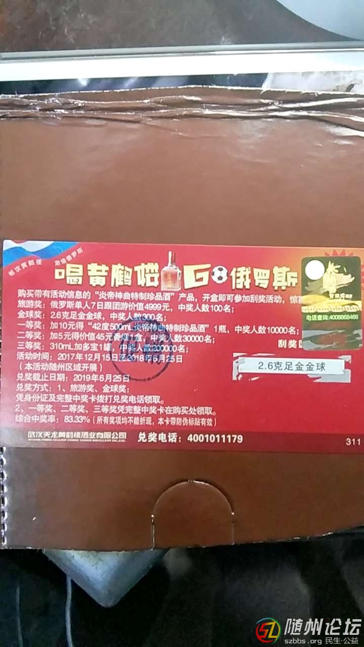 在小店買的炎帝神曲酒中獎了,找小店,小店打電話給經(jīng)銷商,經(jīng)銷商讓小店墊七百元,小店說錢等經(jīng)銷商兌現(xiàn)再給我,說他也不放心,經(jīng)銷商一年到頭只下鄉(xiāng)二三次,怕過期扯皮,上面的兌獎電話形同虛設(shè),永遠(yuǎn)占線中,壇子 ...