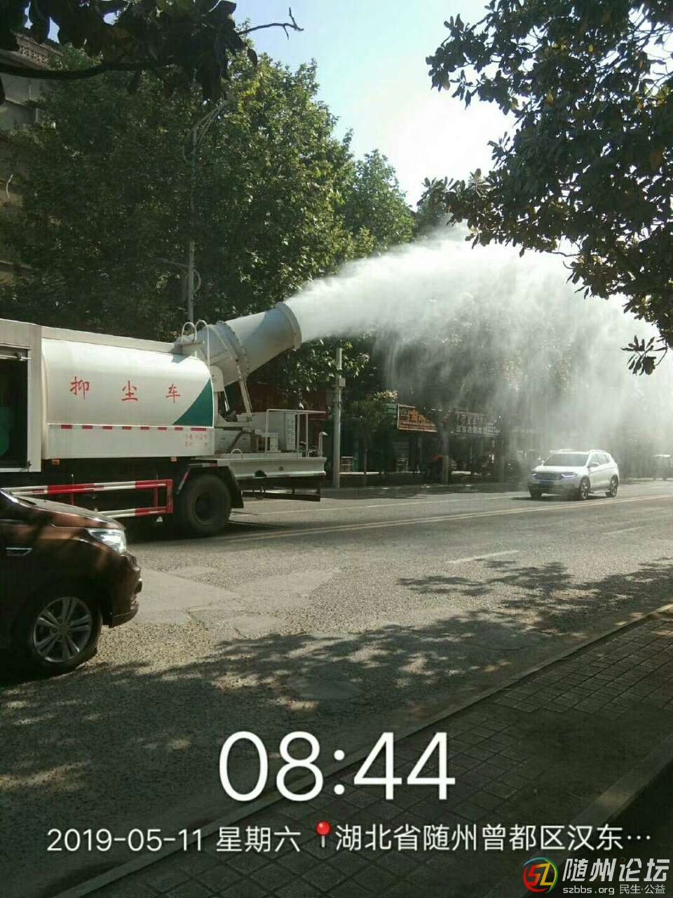 5月11日上午,市容環(huán)衛(wèi)局抑塵車在漢東路作業(yè),高射霧炮向空中噴水,不僅改善了空氣質(zhì)量,還形成了一道美麗彩虹!
