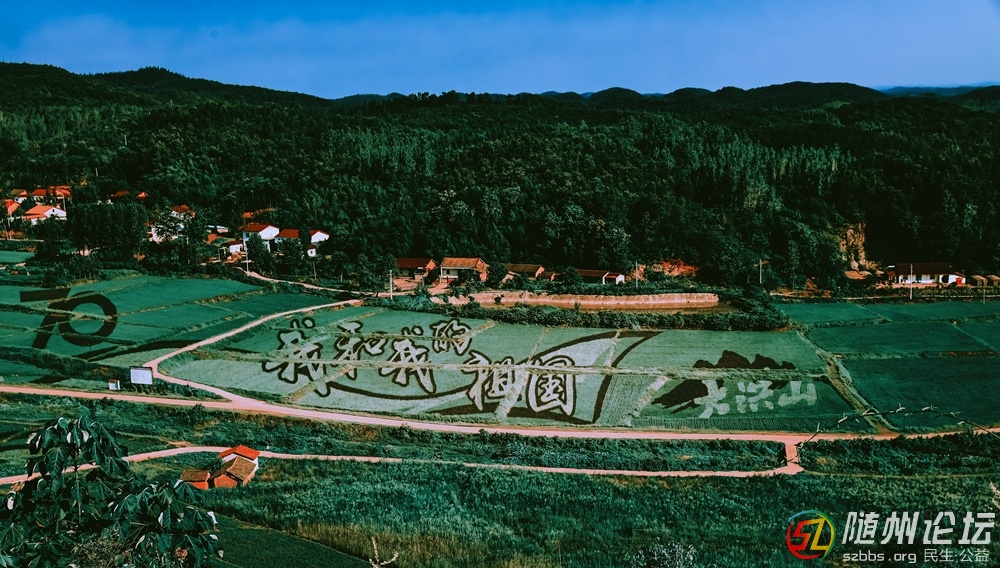今年的大洪山藝術(shù)稻田“我和我的祖國(guó)”真美。 東方海麟 攝