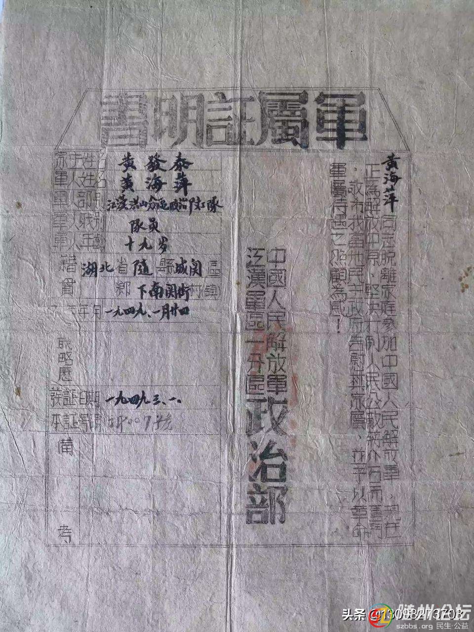 本帖最后由 拂曉森林 于 2019-8-1 21:08 編輯 隨州市驚現(xiàn)解放前軍屬證明書。