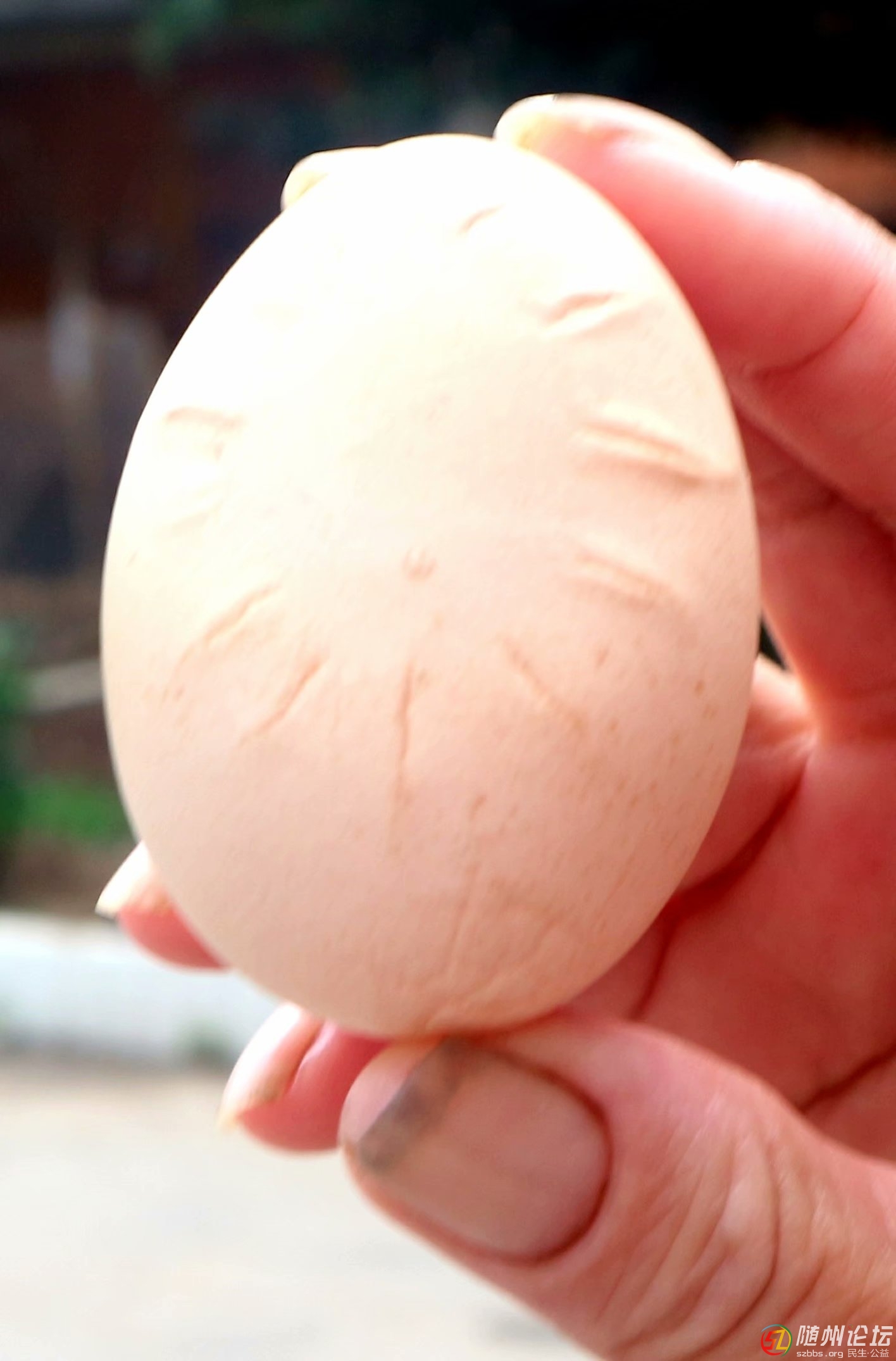 今天上午,鄰居劉家 母雞生了一個(gè)雞蛋,蛋殼上呈現(xiàn)很深花紋,貌似(太陽)陽光四射!