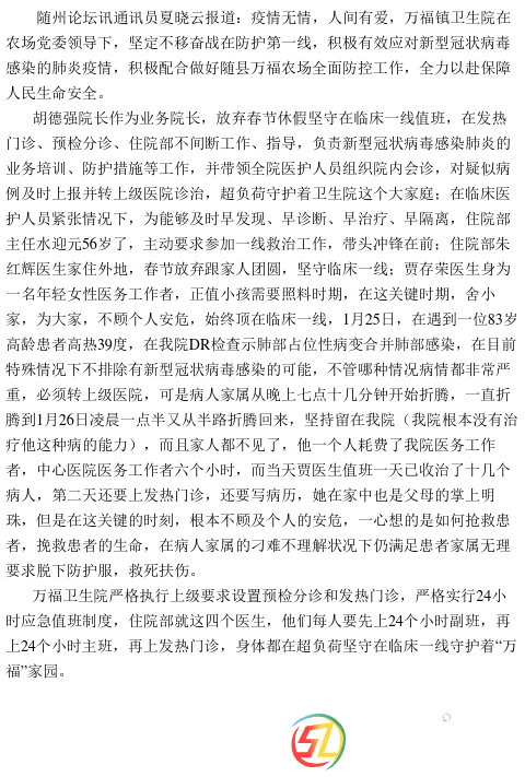 隨縣萬福鎮(zhèn)衛(wèi)生院眾志成城抗疫情