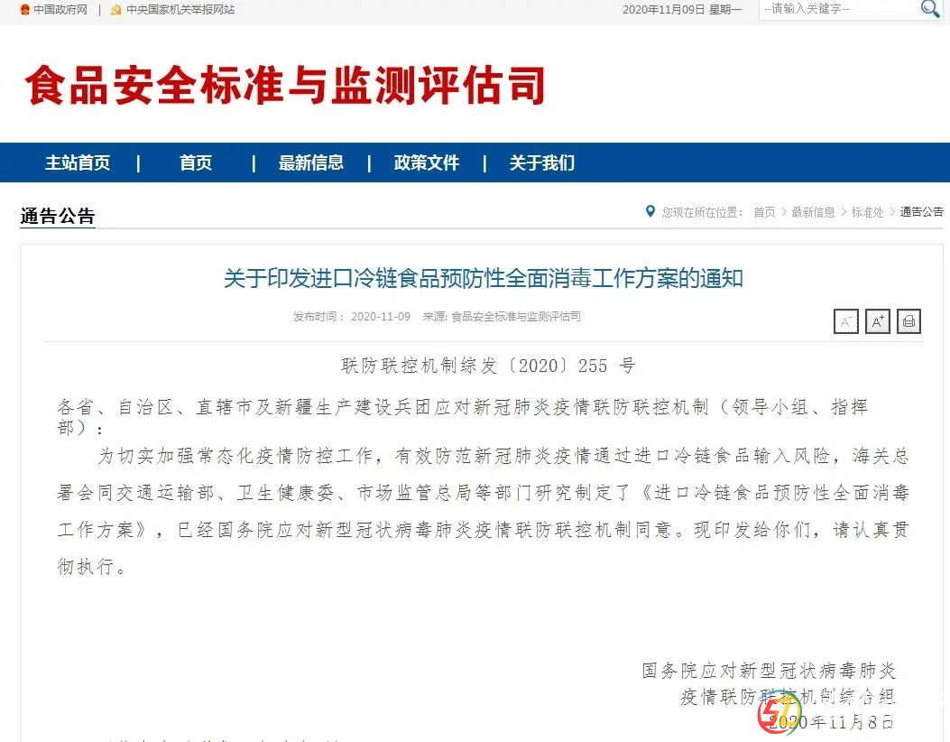 《關(guān)于印發(fā)進口冷鏈食品預防性全面消毒工作方案的通知》11月9日發(fā)布。 通知要求,進口冷鏈食品不提供消毒證明不能上市銷售、強化對企業(yè)進口冷鏈食品的追溯管理,對來源不明的進口冷鏈食品依法進行查處等。 各省 ...