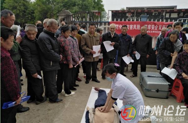 隨州論壇訊(通訊員欽海鷹、白露)“在日常生活中出現(xiàn)意外傷害等危險情況如何能自救互救?”5月12日上午7點,北郊社區(qū)衛(wèi)生服務(wù)中心組織12人醫(yī)療服務(wù)團隊在太山廟村居委會開展以“防范化解災(zāi)害風(fēng)險,筑 ...