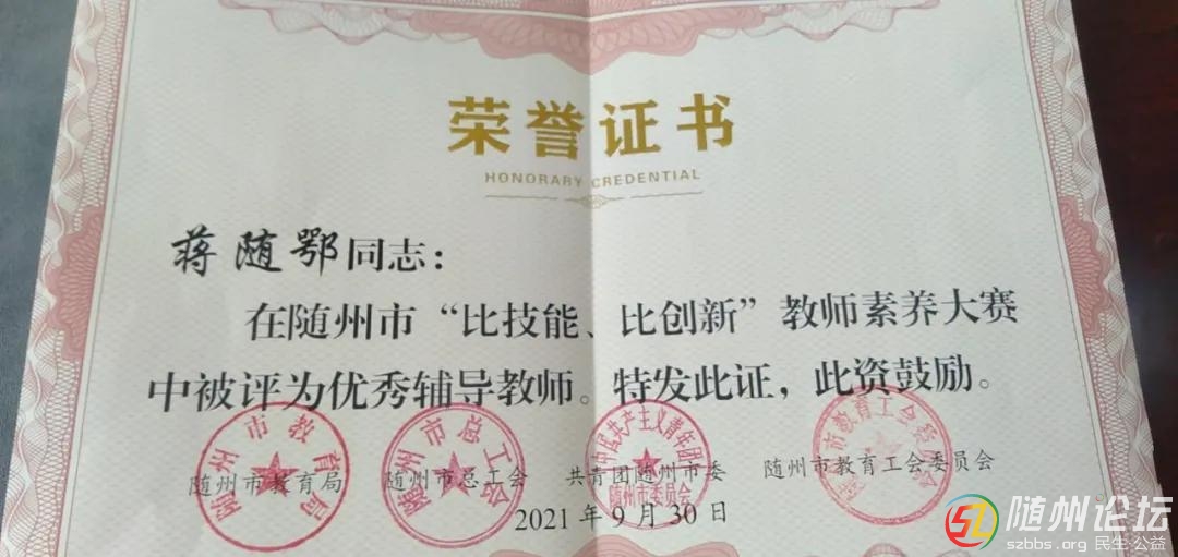 隨州論壇訊 (通訊員魏友、汪建鐵)在隨州市教育局、市總工會(huì)、團(tuán)市委、市教育工會(huì)組織的隨州市“比技能 比創(chuàng)新”教師素養(yǎng)大賽中,隨州一中工會(huì)榮獲“優(yōu)秀組織獎(jiǎng)”,4名教師取得優(yōu)異成績。 ...